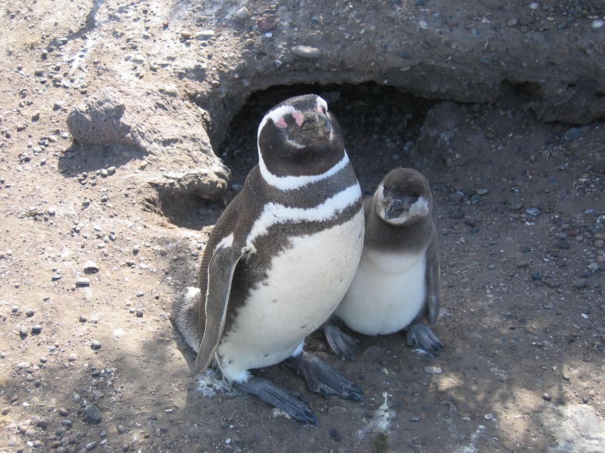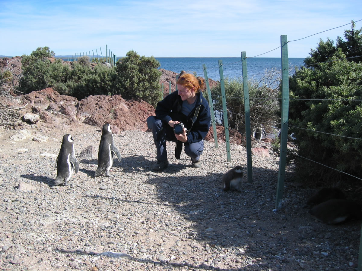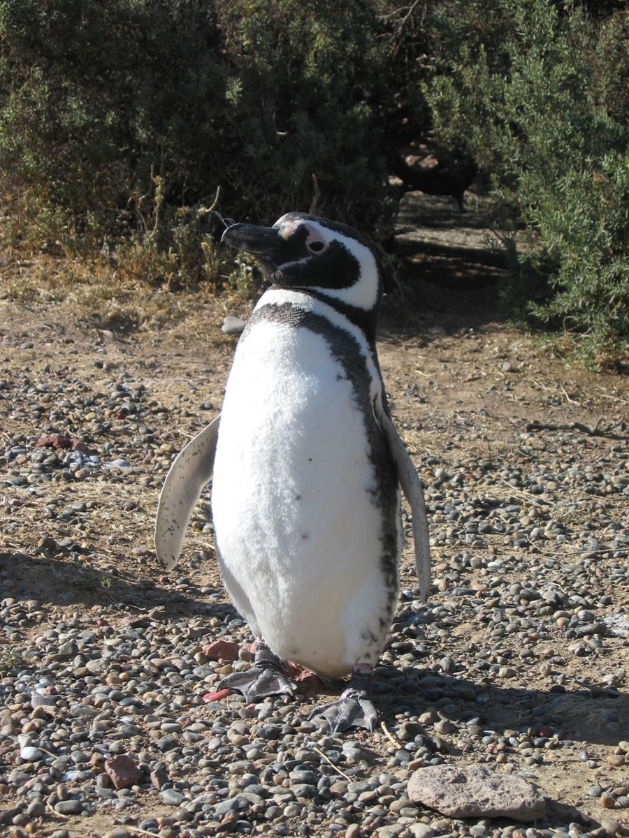 10th - 11th January 2004 Today we wanted to get as far as the Reserva Provincial Punta Tombo, with all the penguins. Rather than take the RN3 most of the way, we drove off to the right along the RP1 via Cabo Dos Bahias. You should be able to see penguins, guanacos and rheas here, but we didn't see much as we carried on driving along the desolate but scenic road. It was incredibly windy and as we began to think about finding somewhere to camp, all we could see were signs everywhere forbidding wild camping. Not that this had put us off before as we don't leave any traces behind, but there was nowhere to camp where we would not be seen from the road. Eventually, as we neared Punta Tombo, we came across a gravel pit just off the main road. With our lights out, it would be difficult to see us from the road. It wasn't until later, when we were cooking up some dinner that Sue got a bit spooked - the milometre was reading 666km for that day. Not a good omen? Fortunately we had an uneventful night, and after a quick breakfast we drove the short distance to Punta Tombo, hoping to have the place largely to ourselves as it was still early. Punta Tombo is the biggest continental reserve of Magelleanic penguins (Spheniscus magallanicus). We were approaching it from the south, along the RP1, but you can also get there via Puerto Madryn. If you head south out of Puerto Madryn, take the RN3, after 70km of paved road and going past Trelew, you transfer to the RP1, a rubble road, which after 107km, will take you to Punta Tombo. Punta Tombo is a protected area - definitely no camping allowed - and extends to 210 hectares. It was created in 1979 to protect local fauna, flora and bird species that gather there to breed. This includes kelp, dolphin gulls, South American terns, skuas, oystercatchers, cormorants, not forgetting the penguins. Also protected are guanacos, maras (Patagonian hare), foxes and armadillos. If you have time to visit only one penguin colony, come here. It is huge and as you arrive you travel along a gravel road and there are signs to give way to the penguins. No zebra crossings here - they just step out into the road and waddle across, virtually oblivious to the slow, oncoming vehicles. You have to pay as you enter, and this contributes to the research into their biology, behaviour and preservation (undertaken by the New York Zoological Society and the Organismo Provincial del Chubut). Once you have parked up, there are designated paths to follow, and whilst people cannot wander off the paths, the penguins can - and do- wander onto the paths. You could spend hours here just watching the penguins and their habits - take lots of film with you. We eventually tore ourselves away and headed on to Gaiman, where we hoped to camp that night. Click here to see more pics of in the Punta Tombo Gallery