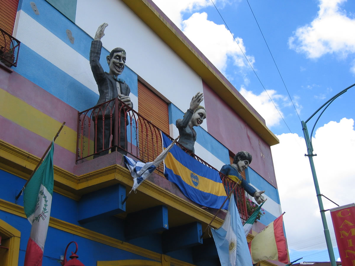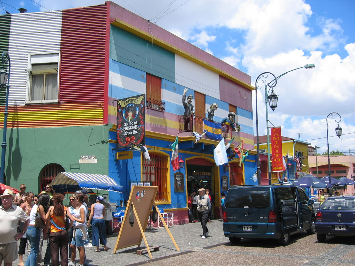 Buenos Aires cont'd The rest of our time in Buenos Aires we just spent relaxing, doing a bit more shopping and sightseeing. Another area worth going to is La Boca - the most colourful barrio in Buenos Aires, originally set up by Italian immigrants. Brightly painted houses of the Caminito pedestrian walkway. There are lots of artists selling their wares and peolpe demonstrating the Tango. Ed and I decided to give the mate a try. Not quite to our taste - Ed said it tasted like sucking hot water through a bail of hay!