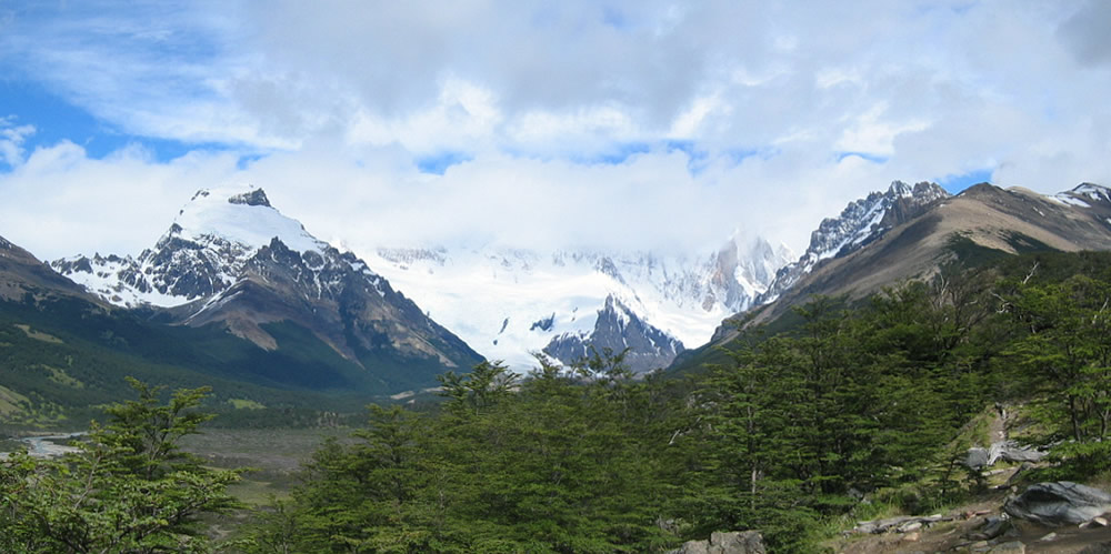 21st - 22nd December 2003 We were greeted again this morning by good views of the mountains from our campsite. With the promise of good weather for the rest of the day we headed off for a morning walk before leaving the park for El Calafate. We took a path from behind the park information office heading along the Laguna Torre trail. The initial path was not that easy to find but we soon joined it and climbed up the fairly steep trail. Eventually the route evened out and we made our way through beech forests with the Rio Fitz Roy to our left down below. We had fairly good views but we still couldn't make out Cerro Torre itself. Biting insects were out in abundance, so it would be worth taking insect repellent, especially if the sun is shining, as it was today. We left El Chalten at about 1pm and rejoined the road to El Calafate - 220km away at the southern end of the park. It was a shame to be leaving it so soon. The paths are well maintained and there are quite a few walks to do. You could easily spend a week here. Definitely a place to come back to. There is more scope if you have a lightweight ground tent and can camp on the backcountry trails - some places are too far to reach and return to El Chalten the same day. El Calafate was quite a change after the quiet remoteness of El Chalten. The town is lined with souvenir shops, restaurants and tour agencies and, as we arrived, full of tourists. After stocking up on food at the local supermarket, we found the municipal campsite, Jose Pantin, on the edge of town. It was very busy, with everyone packed fairly close together, but we eventually managed to find ourselves a spot and started to cook up some dinner. The campsite is cheap at only 5 pesos per person with showers, toilets and firepits, but it wasn't the cleanest of campsites and not somewhere you would want to spend more than one night, especially if you wanted a good night's sleep.We turned in early and were woken up at about 11pm by a terrible racket - peering out of the tent we could see a couple across from us using a router (power tool not network device!). They didn't stop until well past midnight. They seemed to be living there permanently, working for the campsite. The next morning we headed into town to get our laundry done, and try to sort out our third party insurance. Ed also needed a hair cut. We soon found an insurance office, Sanin Simunovic, along the Avenida de Libertador 1184. The owner was really friendly and sorted out our paperwork in no time. It was only 48 pesos (approximately $16) and covered us for our stay. At least if we got stopped by the police we would have all the necessary paperwork. There was nothing left for us to do in El Calafate and we wanted to head off to the Perito Moreno Glacier, 80km out of town. But before heading off we stopped at a nice-looking restaurant - Mi Viejo - for our first proper Argentinian steak. The steak was absolutely delicious and that together with mashed potato, salad and a half bottle of red wine came to less than $15 for both of us. Dining out in Argentina was definitely going to be pleasurable! The drive to the glacier was along a fairly good partially paved road. It is supposedly one of earth's few advancing glaciers, although it has not advanced since 1988. Entrance to the glacier is fairly steep - 20 pesos each ($7) - but that is for the whole park rather than just for the glacier itself, so not too bad if you are spending a few days there. When you add the camp site fee of 8 pesos each ($3) it makes a night's excursion very expensive. A you reach the glacier, there is a car park up above and you walk down a series of wooden steps and walkways to get as close as you can. You can certainly hear it before you see it - as pieces calve away and hit the Canal de los Tempanos below you can't miss the huge crashing sound. The glacier is pretty impressive with a frontage of almost 5km and a height of 60m. As you stand on the various catwalks you are almost mesmerised as you watch, waiting for another iceberg to hit the water. It's a shame you can't get any closer, but there had been a few accidents in the past where people had been hit by falling ice, hence the now obligatory use of the catwalks. Eventually we dragged ourselves away and returned to the landy. There were a couple of people having a good look over it as we arrived and we ended up chatting to them about our trip and showing them round our mobile home. It would have been nice to have just popped the roof tent up and camped there for the night but there were signs around the car park stating clearly that no camping was allowed. We weren't too sure if and how this was enforced, so we headed back up the road to the nearest campsite - Camping Bahia Escondida. It is a very woodsy site with use of showers, toilets and firepits. It was certainly a lot more peaceful than the previous campsite at El Calafate. The only noise was from the odd iceberg crashing into the water - and we were 7 km away from the glacier! After a hot shower and eating by the fire, we headed to bed. Tomorrow we had a longish drive back into Chile and Puerto Natales. Click here for more pics in the Perito Moreno Glacier Gallery