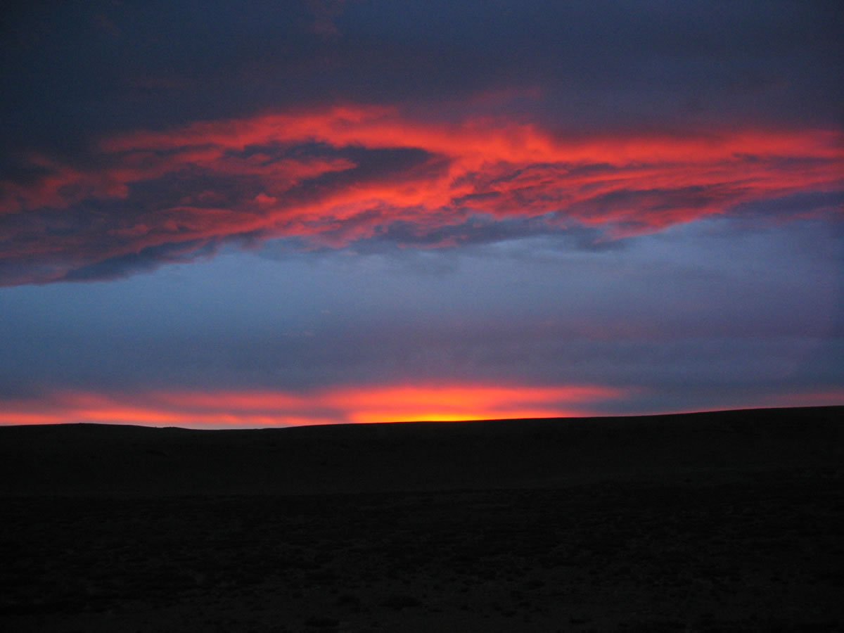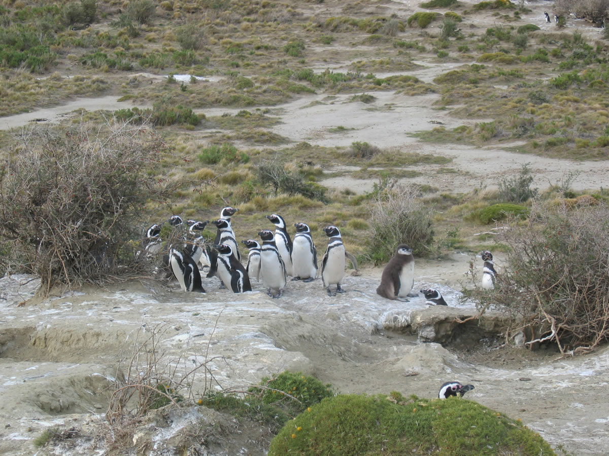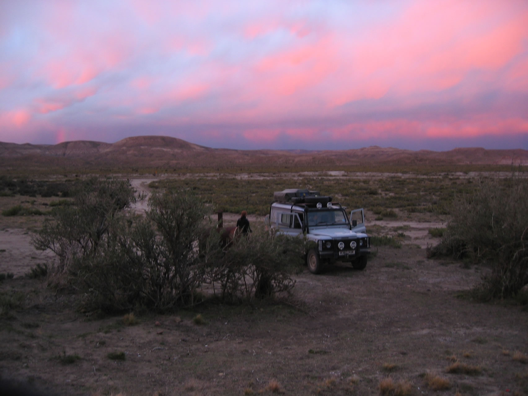 8th January 2004 We were up early to get on the first ferry back across to the mainland at Punta Delgada. The queue was a lot longer than last time and there were a few more lorries too. We were concerned we wouldn't get on and would have to wait for the next one. But yet again, we needn't have worried. We got on easily and were soon back to Punta Delgada and on our way to the Argentinian border at Monte Aymond. From here on the road was a smooth, paved road, so we made quick progress to Rio Gallegos. We were half-way to our final destination that day - the Monte Leon National Park - but we needed to stock up on food. We parked up in town and after checking emails at the J@vaCyberCafe on Roca, we stopped for some lunch further along the road at La Parilla Diaz. Then, after another large succulent steak, we stocked up at the local supermarket and headed back out of town, keeping on the RN3. To get to the park, about 210km north of Rio Gallegos, we had to leave the nice, fast, paved road and travel along RP 63, a rough gravel, pot-holed road off to the right. Keep a look out as you could easily miss the turning. The park consists of 62,168 hectares of patagonian steppe and more than 30km of coast. It felt quite remote and the canyons we drove through gave an almost wild west feel to the park with the rock formations and cacti sprouting up all over the place. Entrance to the park is free, and as we entered there were leaflets available to take, with maps on what to see. There is also a sign stating that the park is not suitable for motor homes (not sure why, as the roads weren't that bad). We drove through Guanacos canyon and then parked up to walk the 1km or so to the penguin colony. They were quite shy, lots hiding away in their little holes in the ground, but you can get quite close to a few who were more curious than the rest. From the top of the headland you get a great view of the entire colony. Make sure you bring binoculars. From there we drove on towards the Guardaparque and the only place where you can camp in the park. There was no one around, and it wasn't easy to see where you could pitch up. We asked another couple who had parked up and they seemed to think we could park and camp anywhere, so long as we were near a firepit. If you have a ground tent, you can camp in a cove below, next to various fire pits, and be fairly sheltered. As we had our roof-tent we had to stay up top on the headland - great views, just not so sheltered. As far as facilities go, there is a toilet block here although that is literally all. It was obviously out of season and the water was all turned off, but I managed to find the stop cock and turn it on just to fill up a jerry can with water as we were running low. One thing we have loved whilst camping out in South America in the middle of nowhere are the fantastic sunsets and night skies. Tonight was no exception. As we cooked up some soup and the sun went down we saw the most amazing sunset with the sky lit up like a rainbow - all greens, yellows and reds. The photos just don't do it justice. Click here to see more pics of in the Mont Leon Gallery | |||