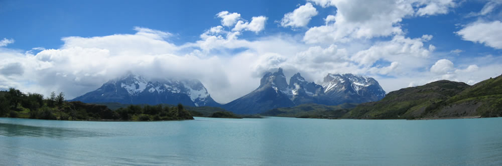 | 26 December 2003 Boxing Day and back to the Weasel The tent survived the windy night - most likely due to the fact that the trees around us offered a reasonable amount of shelter. Again it promised to be a fine day - no rain as yet - and after cooking up some porridge for breakfast, we headed back down to the Weasel. It would have been great to have walked up to the Torres again - the sun would have been in a much better position for photos - but we were both pretty tired, and thinking about our rather fully itinerary over the next few days, we couldn't quite summon up the energy to climb back up the steep rocky slope. We packed up the tent etc and made quite fast progress back down to the Campsite Las Torres. We stopped again at the Chilean Refuge for a hot cup of tea and to stock up on more water and an hour later we were back with the landy. The sky was still fairly clear and as we headed off towards Lago Pehoe, the views along the way were fantastic, especially with the Cuernos in the distance. Again we stopped frequently to take photos and just soak up the views. Camping Pehoe was our final stop that day. From there it would be about a 10 minute drive to the ferry stop where we would cross the Lago Pehoe the next day. The campsite turned out to be one of our more expensive campsites at 8,000 Pesos each a night, but the showers were very clean and hot and the views were well worth it. We parked the Weasel up with the Cuernos forming the backdrop to our site, and a few steps away from the lakeshore. Desperate for a shower we cleaned up only to be greeted five minutes later by a light drizzle of rain. Cooking dinner was going to be fun! While we waited to see if the rain would let up, Sue went off in search of some bread from the little convenience shop on the site (the bread tended to go stale quite quickly so it was pointless buying in bulk). Unfortunately they had run out and wouldn't be getting any more until the next day - possibly. Luckily a guide from one of the tour groups also camping there overheard Sue conversation and gave us a bag of rolls from their provisions - he said they had more than enough spare. That would keep us going at least until lunch the next day. The other group camping that night was the Dragoman truck we kept bumping into. We caught up with a couple of the people in the group later that night, but most of the original ones we had met in Peru had now left the tour and had headed home. After watching a great sunset going behind the Cuernos, we headed off up to the roof tent for a welcome sleep. The matress felt so much better than the kip mats we slept on the night before. Click here for more Gallery Pictures